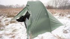 For a quick shelter, use the Windsack’s corner loops to rig a windbreak. For more shelter, simply deploy the Windsack, climb in and hunker down out of the elements. Ideally, you should dig out a dedicated spot in the snow or find a place that has some protection from the wind. But once inside, you can enjoy a snack or a rest break, change clothes, even deal with equipment issues or administer minor first aid. The Windsack’s waterproof back/breathable front configuration, multi-slider zipper, and closable bottom hem also make the Windsack useful as a sleeping bag cover for tarp camping.